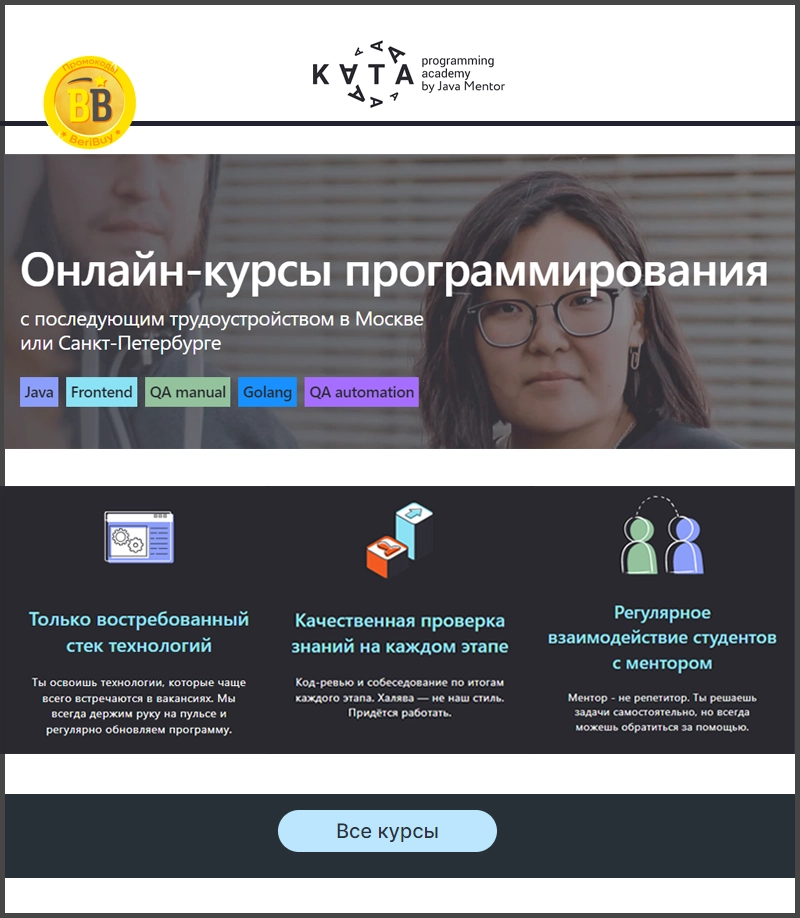 Что ж: в Лофтскул представлен самый длительный период рассрочки, зато только в Ката есть оплата по системе ISA – только после трудоустройства. А еще все три компании позволяют при оплате использовать скидочные промокоды от платформы-агрегатора BeriBuy, с которыми вам гарантировано действительно выгодное снижение стоимости или приятные подарки от выбранной школы.